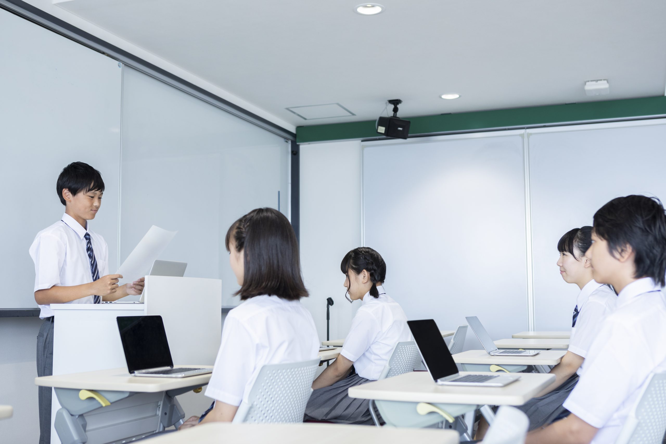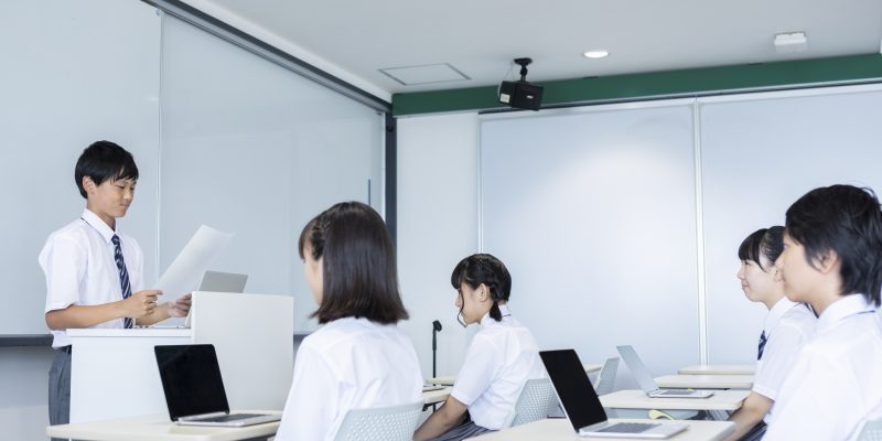 授業中の中学生