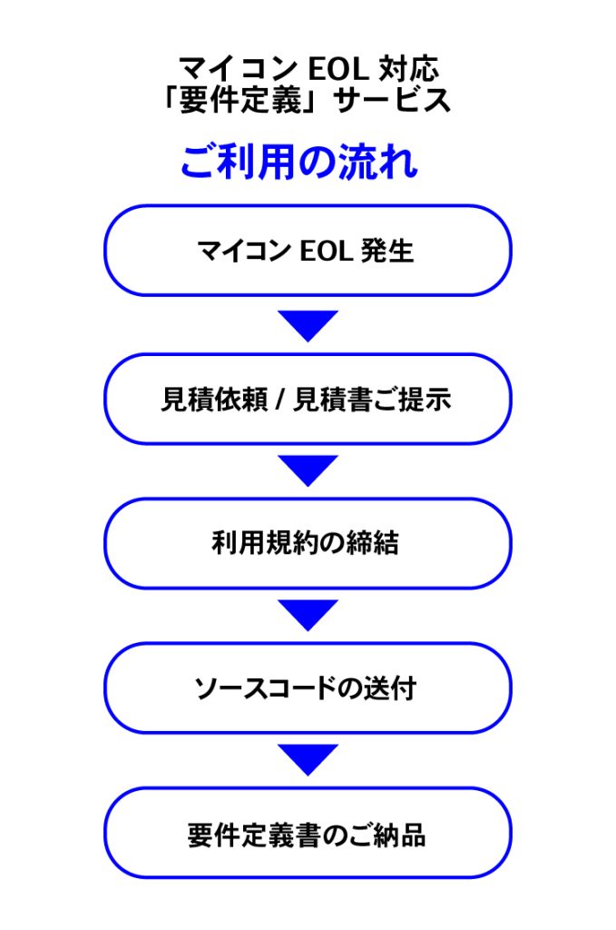 本サービスは、マイコンEOL発生時の初動フローに沿って、以下のステップでご利用いただけます。